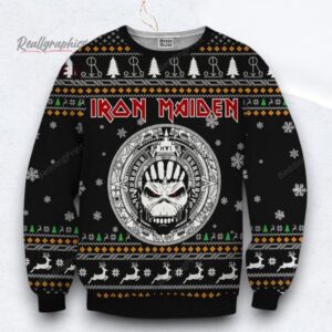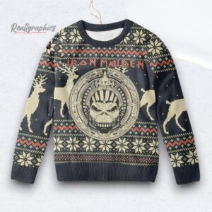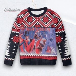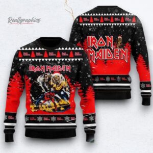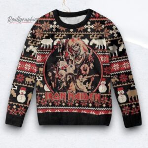 Iron Maiden The Number Of The Beast With Band Member Pattern Ugly Christmas Sweater