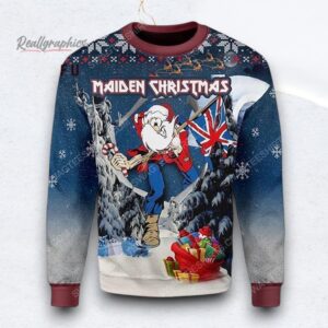 Iron Maiden With Santa Hat Snowy Night Pattern Knitted Ugly Christmas Sweater