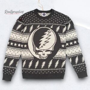 Grateful Dead Skull Skeleton Play Guitar Ugly Christmas 3D Printed Sweater