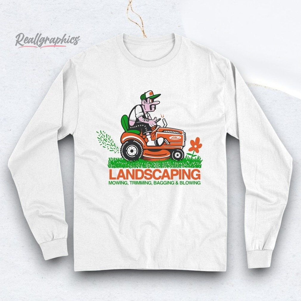 Frowning Man Landscaping Mowing Trimming Bagging And Blowing Shirt