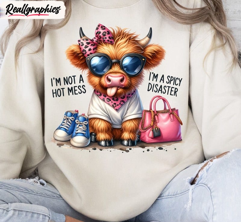 Funny Highland Cow Long Sleeve , Limited I’m Not A Hot Mess I’m A Spicy Disaster Shirt Tank Top