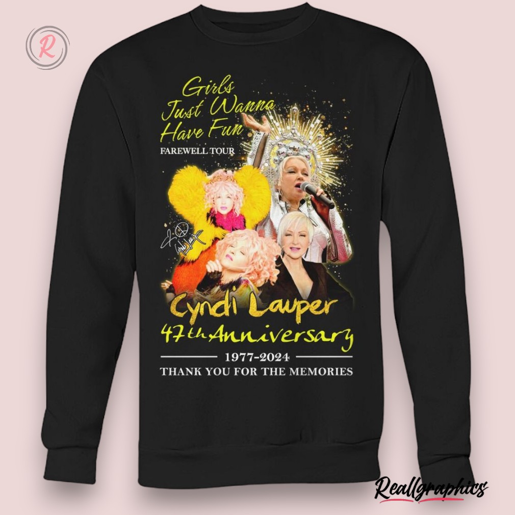 Girls Just Wanna Have Fun Farewell Tour Cyndi Lauper 47th Anniversary 1977 2024 Thank You For The Memories Unisex Shirt