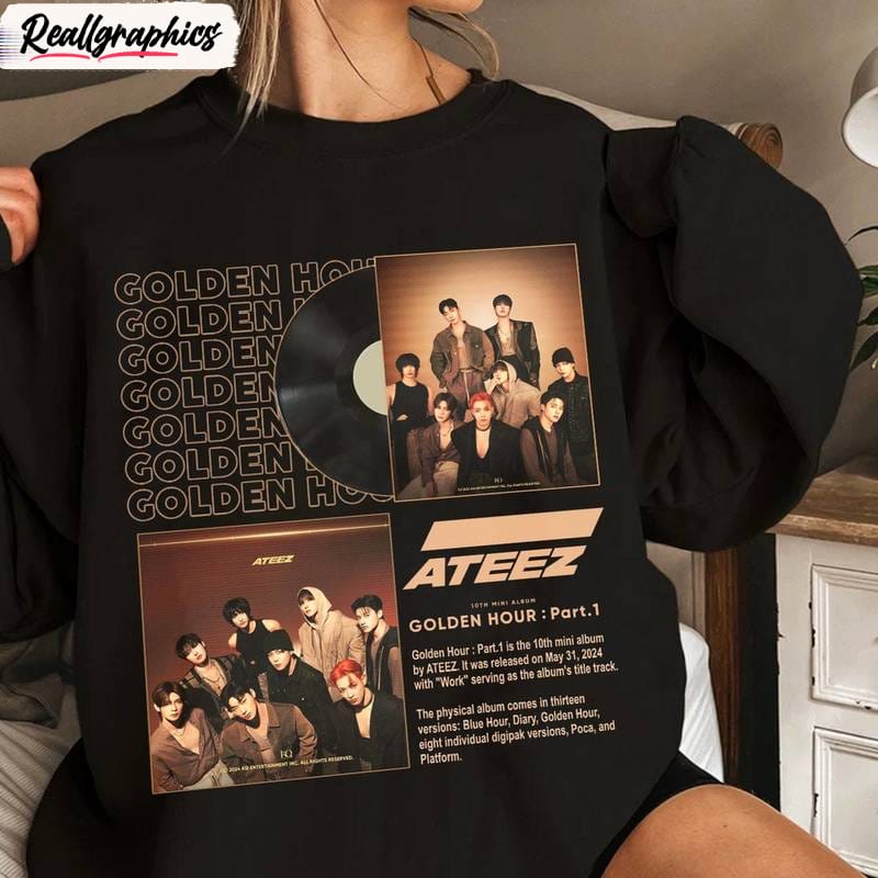 Golden Hour Part 1 Album Sweatshirt, Retro Ateez World Tour Shirt Short Sleeve
