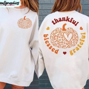 Grateful Thankful Blessed Autumn Shirt, Leopard Pumpkin Crewneck Sweatshirt