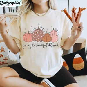 Grateful Thankful Blessed Shirt, Boho Christian Fall Crewneck Short Sleeve