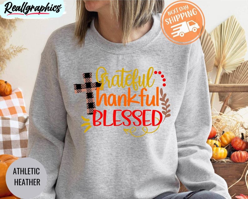 Grateful Thankful Blessed Shirt, Trendy Crewneck Unisex T Shirt