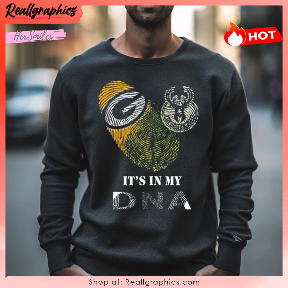 Green Bay Packers And Milwaukee Bucks Heart It’s In My Dna 2023 Unisex Shirt