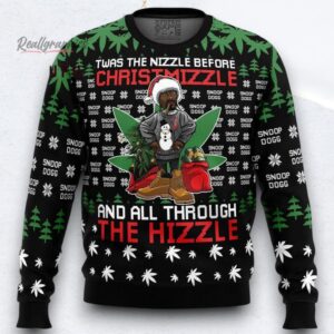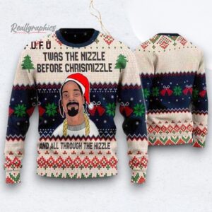 Snoop Dogg Santa Hat Twas The Nizzle Red Bells Ugly Christmas Sweater