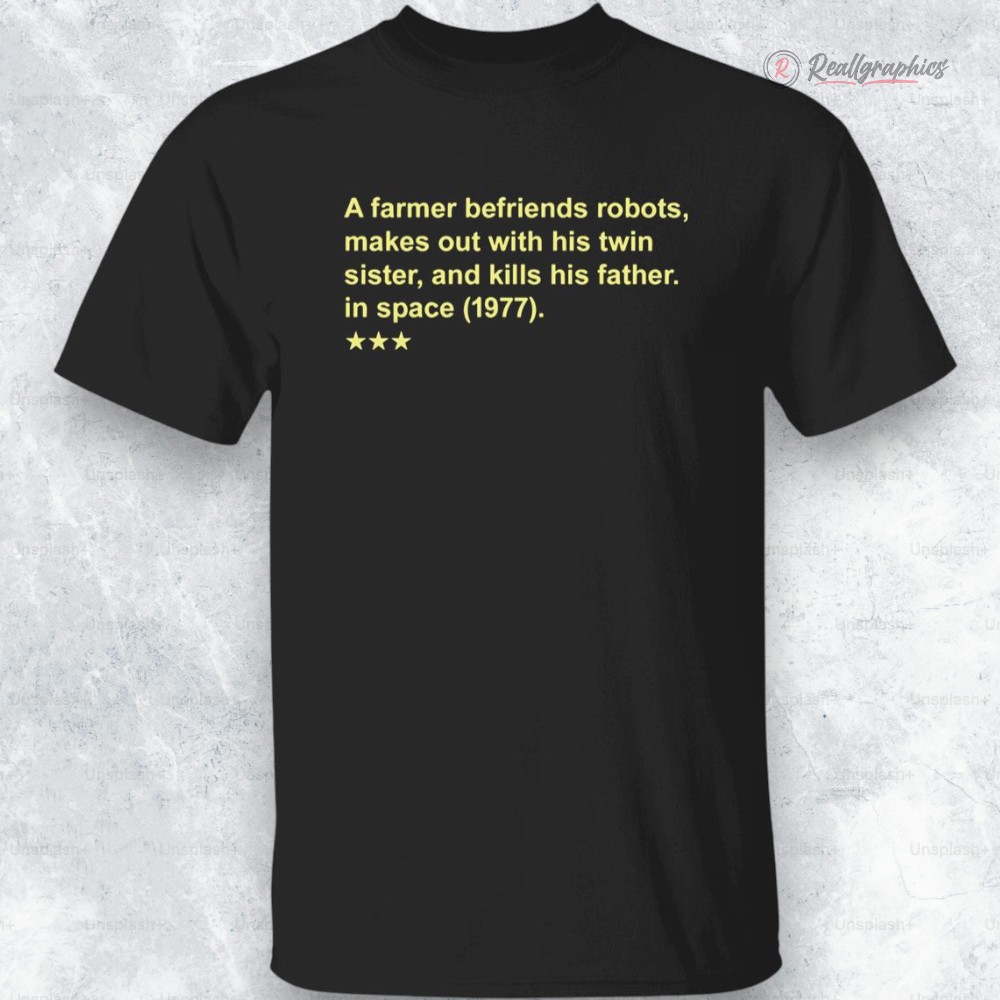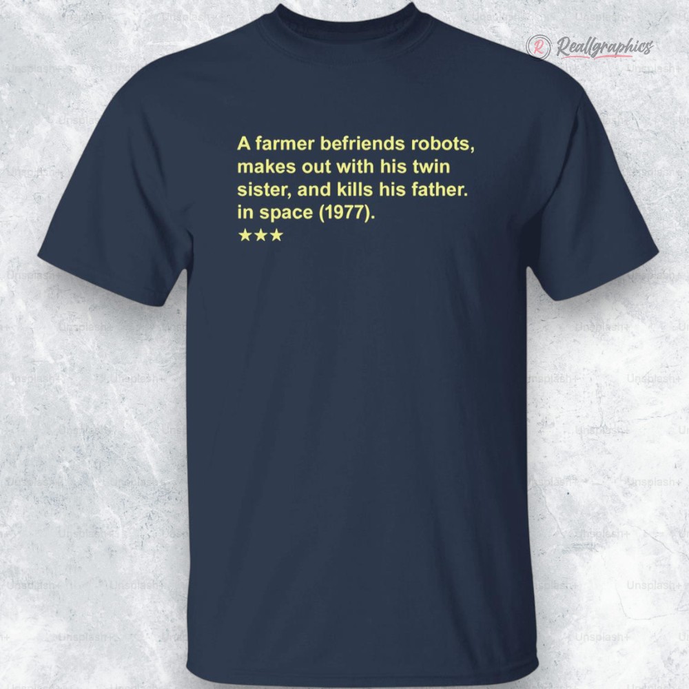 A Farmer Befriends Robots Makes Out With His Twin Sister And Kills His Father In Space 1977 Shirt