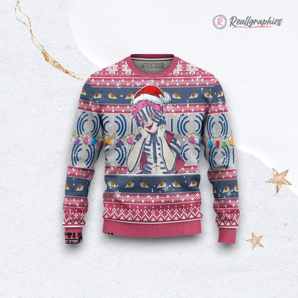 Stay warm and festive with this unique anime-inspired sweatshirt! Featuring a design that's both cozy and eye-catching, perfect for holiday parties or just lounging around. Get ready to slay the holiday season in style! Limited quantities available.