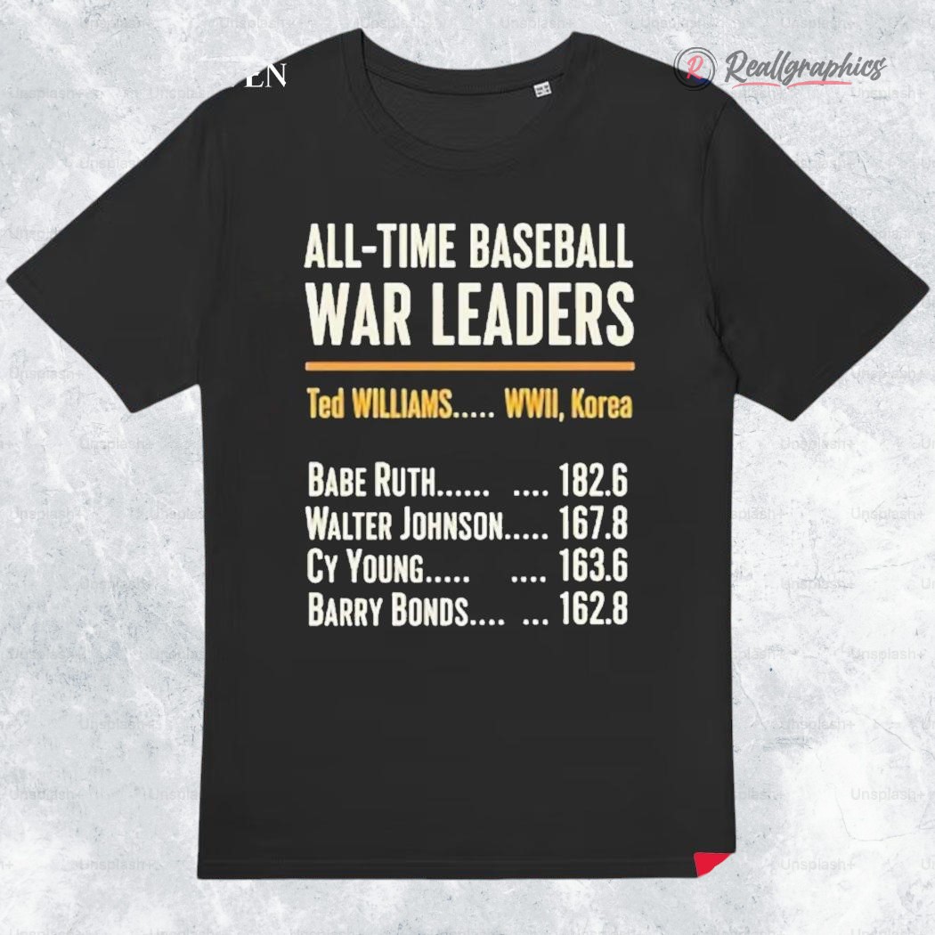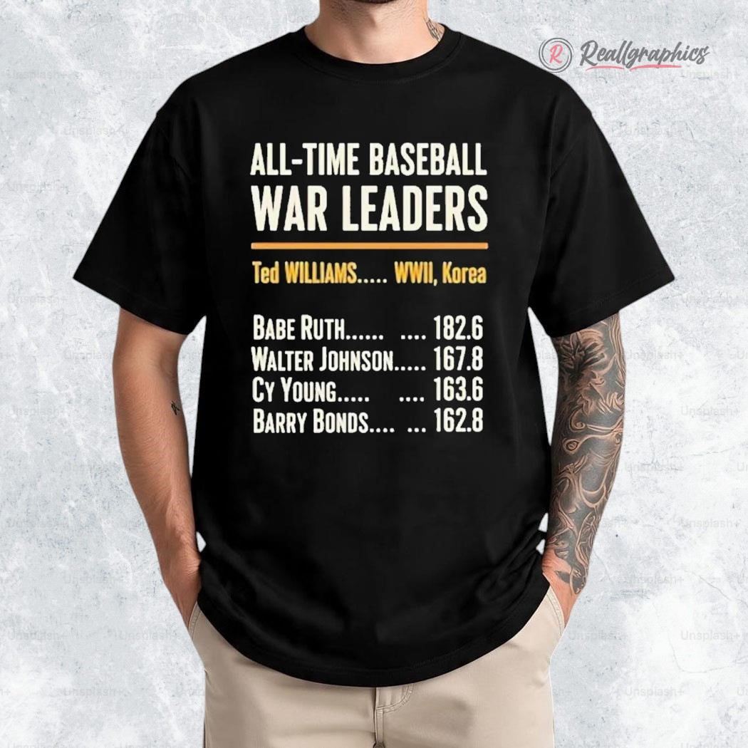 Show your love for baseball's statistical giants! This tee features legends who top the Wins Above Replacement leaderboard. A must-have for any serious baseball fan. Grab yours and wear baseball history! All time Baseball War Leaders Shirt