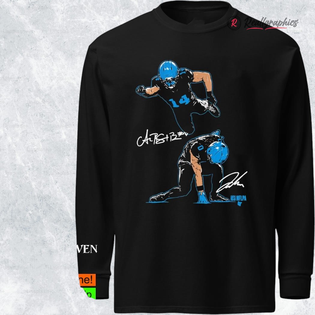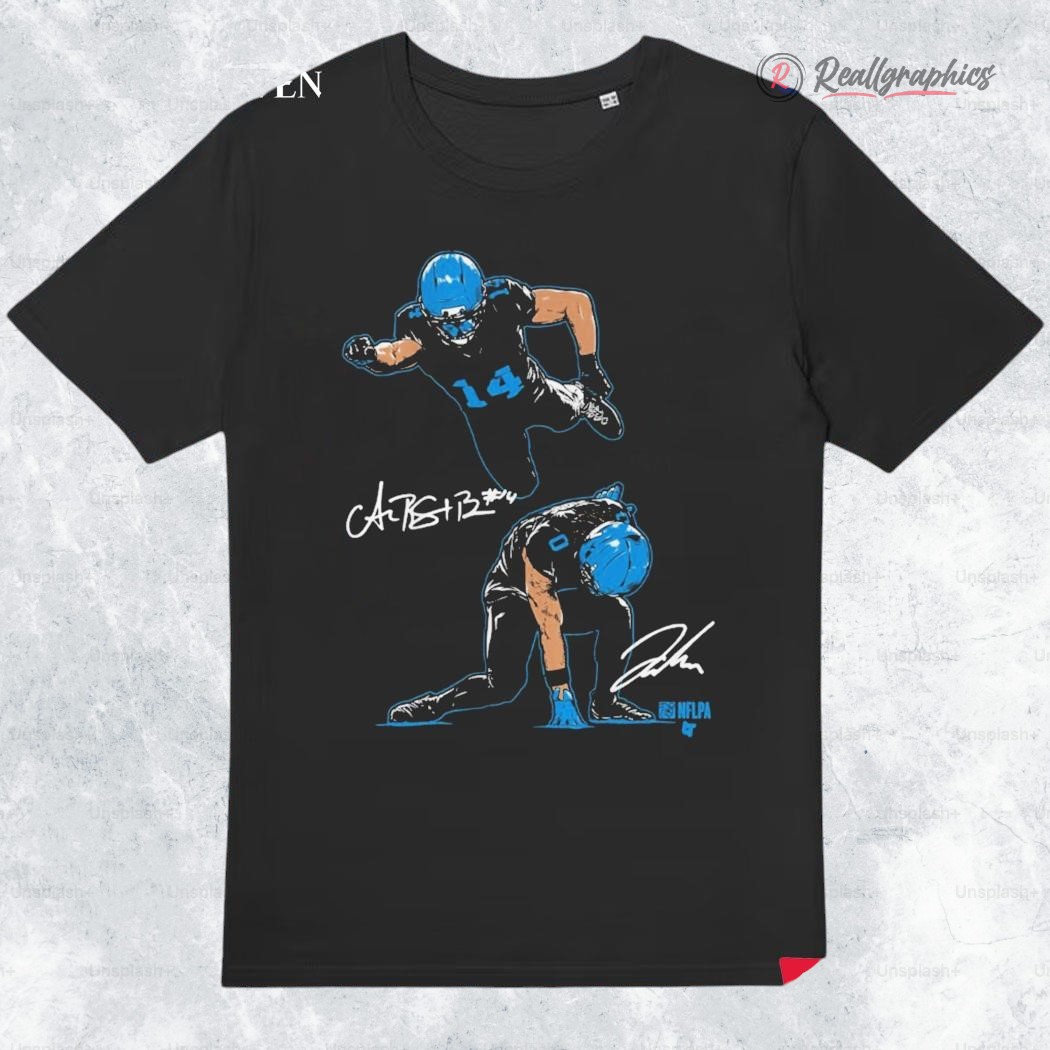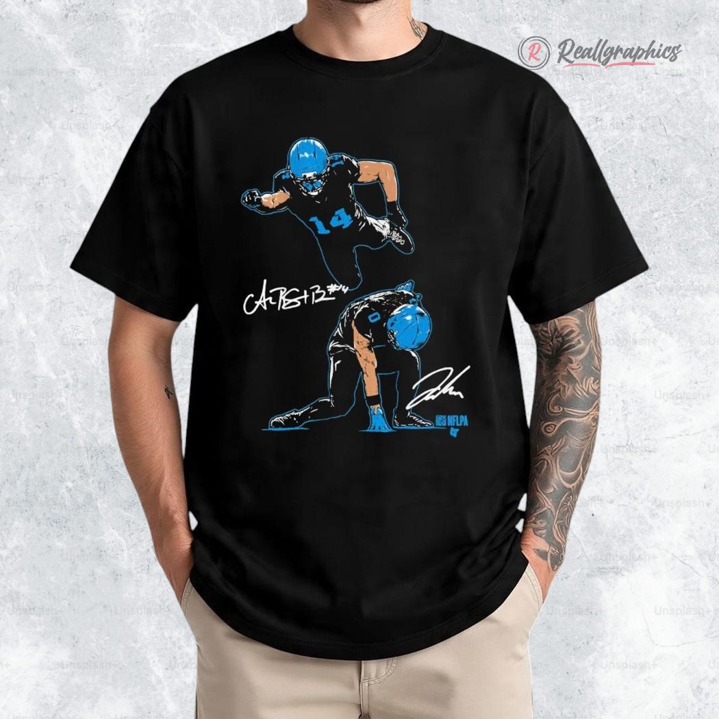 Unleash your inner Detroit football fanatic! ✨ This limited-edition shirt celebrates two gridiron dynamos with unique superhero flair. A must-have for any Lions fan looking to roar with pride and rep the future of the Motor City. Get yours before they're gone! 🦁