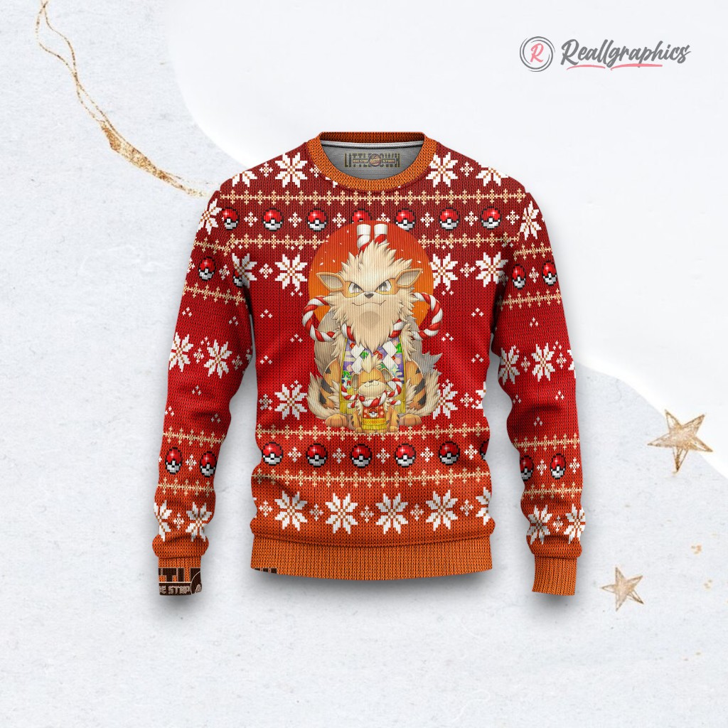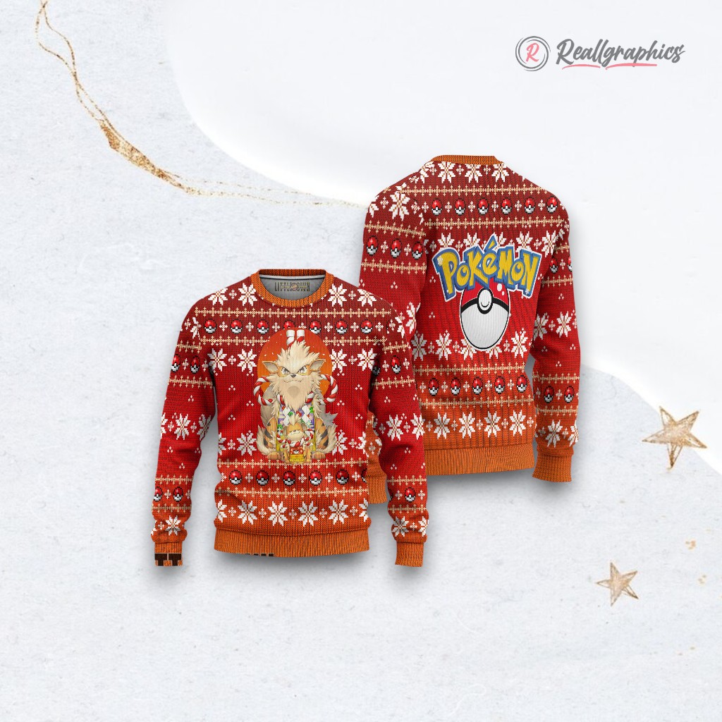 Stay cozy and festive this holiday season with this awesome Pokemon-themed Christmas sweater! Show off your love for Arcanine and spread some holiday cheer with this unique and eye-catching design. Perfect for Pokemon fans and ugly sweater parties! Get yours now! Arcanine Ugly Christmas Sweater Pokemon Xmas Ugly Sweatshirt, Sweater