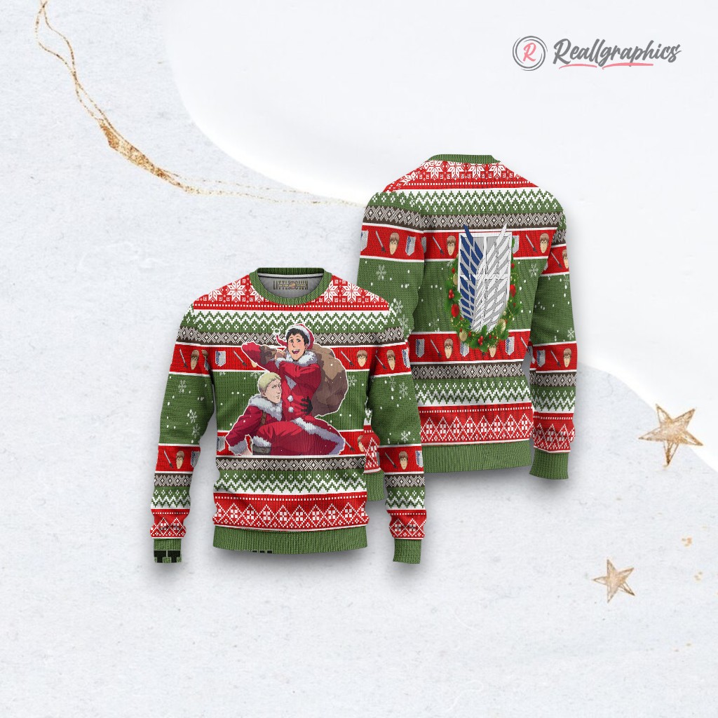 Neigh! This holiday season, gallop into the festivities with this custom anime sweatshirt! Featuring everyone's favorite horse-faced hero, Jean Kirstein, it's the perfect quirky gift for any AOT fan. Get yours now and spread some Survey Corps cheer! 🐴🎄