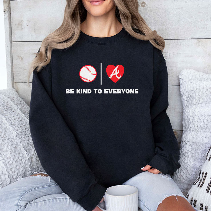 The energy of a packed stadium hums beneath the worn brim of a cap, the crack of a bat echoing the spirit of teamwork and community. Here, the Be Kind To Everyone slogan stands bold and clear in uppercase letters, slicing through the shirt’s sporty vibe like a rallying cry. A crisp baseball icon anchors the design, while a heart emblazoned with the classic Atlanta Braves “A” beats prominently, framed by a clean vertical separator that balances the composition with purposeful simplicity. This shirt speaks to more than just allegiance to the Braves; it embodies a culture where respect and kindness form the foundation of every play, every fan chant, every handshake after the game. The bold sans serif font emphasizes strength and clarity, reflecting the wearer’s commitment not only to their team but to embodying empathy on and off the field. Anyone who finds joy in the game, yet values the message of unity and positive spirit, will feel right at home in this tee—a subtle but powerful reminder of what sports can represent beyond competition. Whether worn on a casual day out or at team gatherings, it resonates with those who understand the real wins happen in kindness. It’s a thoughtful nod to friends and teammates who share that mindset, quiet yet undeniable, like a good game played with heart.