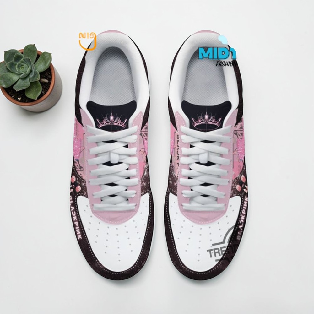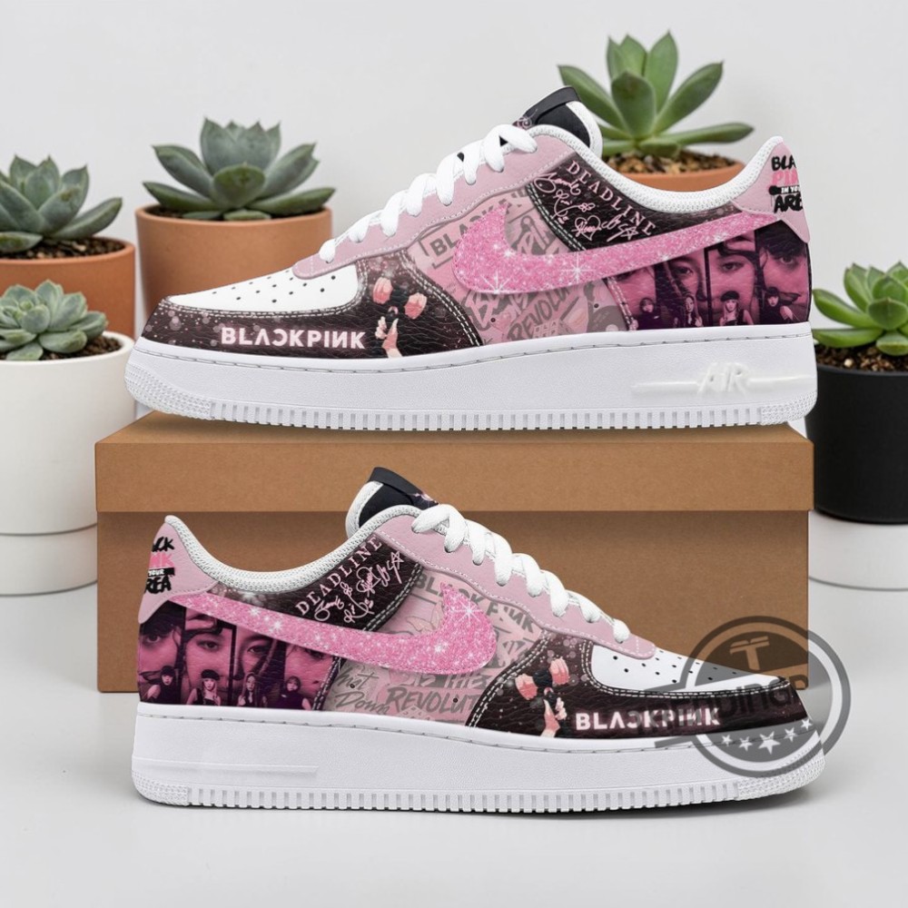 The moment these sneakers come into view, their striking blend of pink and black demands attention with an energy that's impossible to ignore. The iconic Air Force 1 silhouette gets a bold twist, covered in contrasting panels that highlight every curve and seam. White laces thread through the design, offering a crisp counterpoint that keeps the look fresh and wearable. Digging into the details, the graphic elements tell a story that’s both abstract and intentional. Crown motifs and dynamic text accents play off the sharp sans-serif typography, while the layered patterns evoke the pulse of a concert crowd, capturing the vibrant spirit of a world tour. It’s a visual shoutout to fans who live and breathe that bold Blackpink style—where music and streetwear collide. These sneakers resonate deeply with anyone who embraces fashion as a form of fandom, those who want to showcase their love for K-pop without ever saying a word. They make a statement not by shouting, but through confident design choices that align seamlessly with youthful energy and vibrant personalities. Perfect for daily wear or catching a live show, this Blackpink Deadline World Tour Air Force 1 blends seamlessly into the rhythm of a lifestyle that’s as dynamic as the sneakers themselves. For collectors and fans alike, they’re more than just footwear—they’re a cultural flag planted firmly in the streetwear world.Blackpink Deadline World Tour Air Force 1