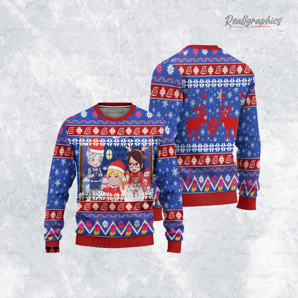 Get ready to jingle all the way with this hilarious and adorable anime-inspired Christmas sweater! Featuring your favorite ninja in a super-cute chibi design, it's the perfect way to show off your fandom this holiday season. Warm, cozy, and guaranteed to turn heads at every party! Boruto Chibi Ugly Christmas Sweater Blue