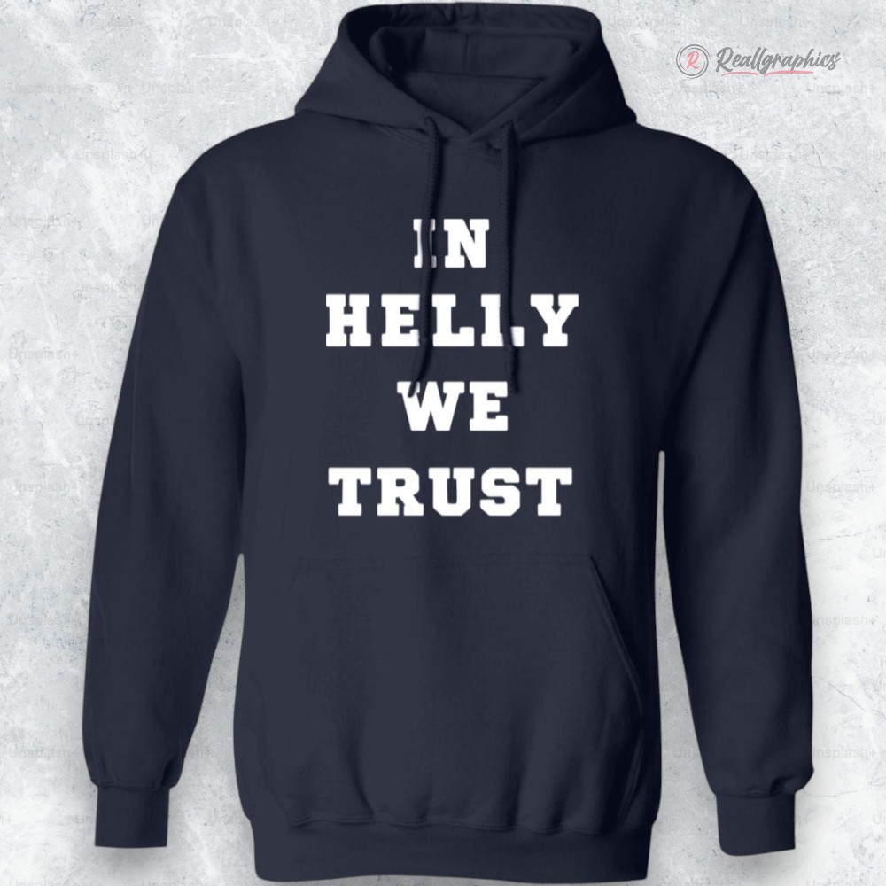 There’s something about bold lettering that just grabs your attention without trying too hard. This navy hoodie catches the eye immediately with its white, distressed block text, arranged in four sharp lines: IN, HELLY, WE, TRUST. The strong serifs give it that classic collegiate vibe, making it feel both timeless and powerful. The design isn’t just about looks—it says something. It’s for those who want to wear their allegiance on their sleeve, quite literally. Whether you're at a game, hanging out with friends, or just embracing streetwear style, this hoodie makes a clear statement. It’s confident, assertive, and carries that unshakable spirit of loyalty. If you’re the kind of fan who believes in standing behind your team or brand with pride, this fits right in with your mindset. And here’s the thing: it’s not just for game day. It’s got that laid-back yet bold energy that keeps it in rotation for casual outings and group hangouts. It’s the kind of piece that friends or teammates would absolutely appreciate as a gift—a reminder that sometimes, faith in something bigger (or someone better) can be worn loud and proud. When you think of “in helly we trust,” it’s more than a slogan—it’s a mindset.