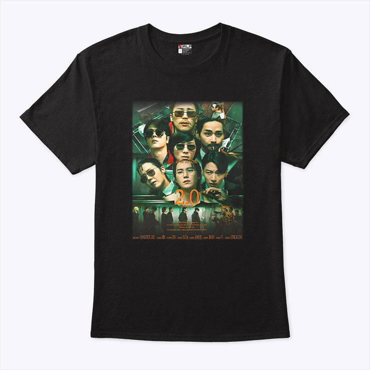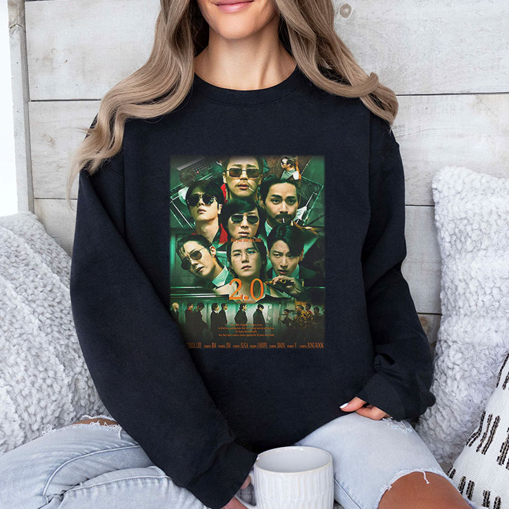 Expressing oneself goes beyond words—sometimes it’s in the way we choose to carry moments that feel like milestones. The BTS 2.0 Arirang shirt captures that spirit with a powerful nod to the energy and nostalgia woven through BTS’s journey. The vibrant greenish backdrop sets a vintage tone, reminiscent of old concert posters, while the bold, centered orange 2.0 text slices through the design with a burst of dynamic contrast. A collage of the BTS members, each captured in cinematic poses, anchors the composition, lending an almost storyteller’s quality to the piece. It’s a layered narrative told through faces and colors, honoring both individual and collective identity within the fandom. The typography echoes that retro concert vibe with bold, classic fonts that feel grounded yet alive, perfectly complementing the energetic and slightly nostalgic atmosphere. This shirt invites wearers to carry a piece of that history with them—not just as casual observers but as active participants who understand the significance behind the visuals. It resonates with someone who sees fandom not as a hobby but a part of their own story, whether at meetups, casual days out, or moments that call for something meaningful yet approachable. A fan of BTS, or anyone drawn to expressive, artful design, will find a quiet pride in wearing this. It’s a thoughtful nod to shared experiences and a subtle declaration of belonging—all wrapped in a carefully crafted retro aesthetic.