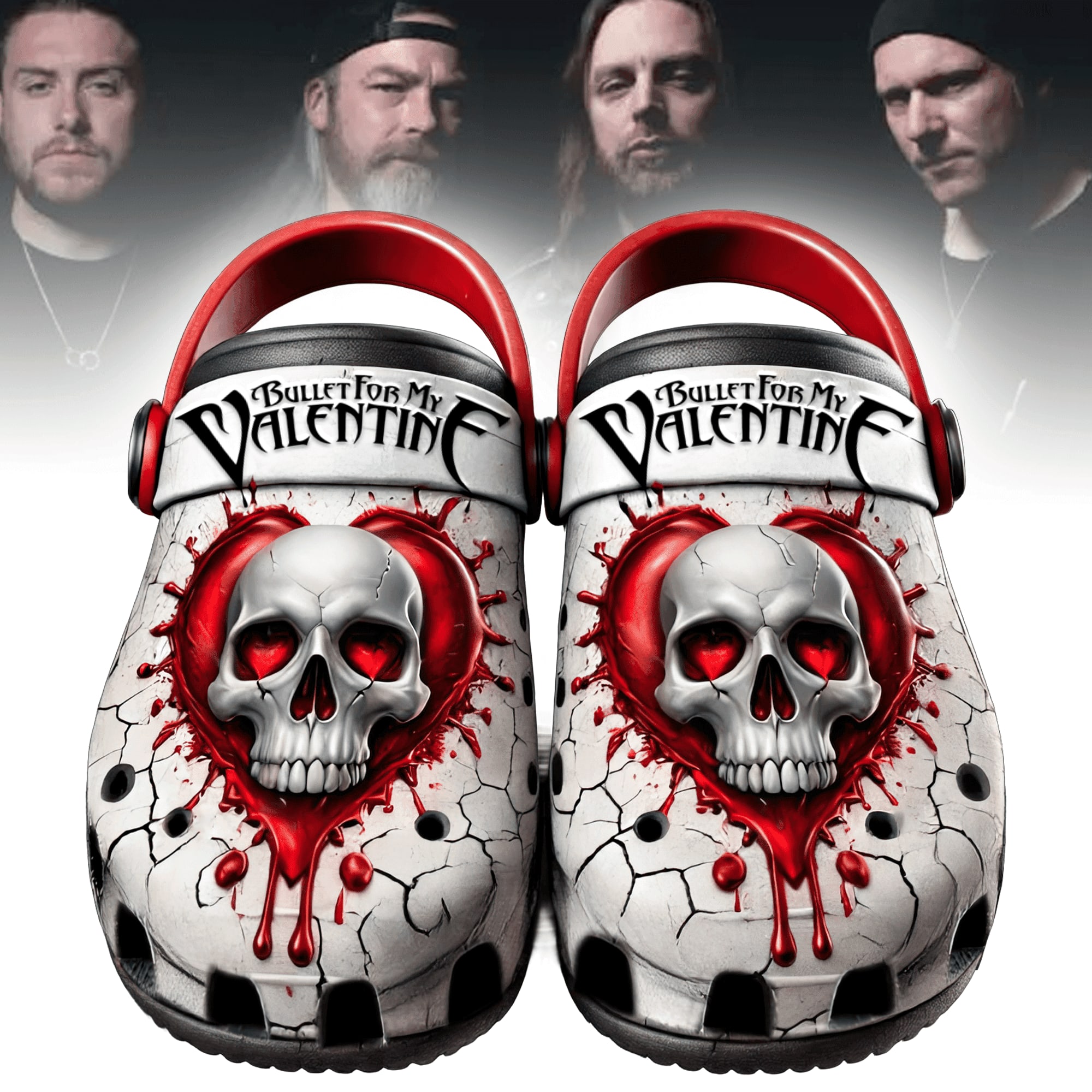 Step into the pit with these custom Crocs! Featuring iconic imagery inspired by the band, these 3D printed shoes are perfect for any metalcore fan. Comfortable, unique, and ready to rock. Get yours now and show your love for BFMV! Bullet for My Valentine Music 3D Printed Classic Crocs