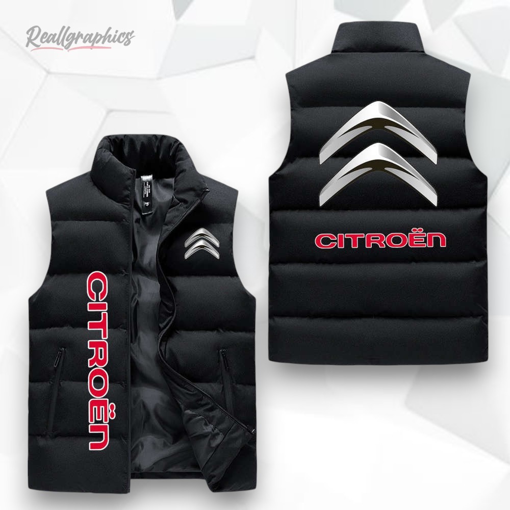 Love expressing your passion for iconic designs? This sleeveless puffer features the legendary Citroen logo in a sleek, striking look. Whether you're a car enthusiast or just appreciate timeless style, this piece tells a story of innovation and elegance. Perfect for those who love to stand out with subtle flair. Add this unique touch to your wardrobe today!