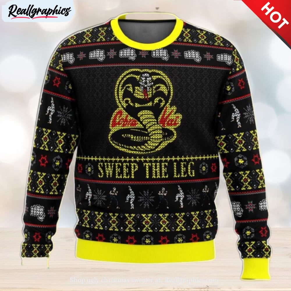 Cobra Kai Ugly Christmas Sweater Sweep The Leg Karate Kid Christmas Sweater 3D Gift For Men And Women details