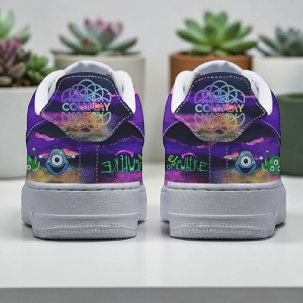 A burst of cosmic energy wraps around these shoes, where swirling galaxies and shimmering planets mix with abstract patterns that feel both electric and otherworldly. Bright pops of color arc across the familiar Nike Air Force 1 silhouette, tracing a bold, vibrant path that echoes the futuristic pulse of Coldplay’s Music Of The Spheres tour. The clean white laces serve as a subtle contrast, grounding the explosive imagery without dulling its impact. Small, decorative text elements weave through the design, like whispered nods to the band, each detail inviting closer inspection rather than shouting for attention. It’s a look that refuses to blend in, made for someone who wears their fandom as a form of personal expression—people who see their music not just as sound but as a visual and cultural statement. These shoes fit naturally into a streetwear vibe, paired with anything from relaxed denim to a graphic tee layered under a bomber jacket. Sneaker collectors who crave more than the usual release and concertgoers who want to carry the energy of the show beyond the arena will find something distinctly theirs here. The Coldplay Nike Air Force 1 isn’t just footwear; it’s a way to hold onto a moment, a mood, and a shared universe that’s anything but ordinary.