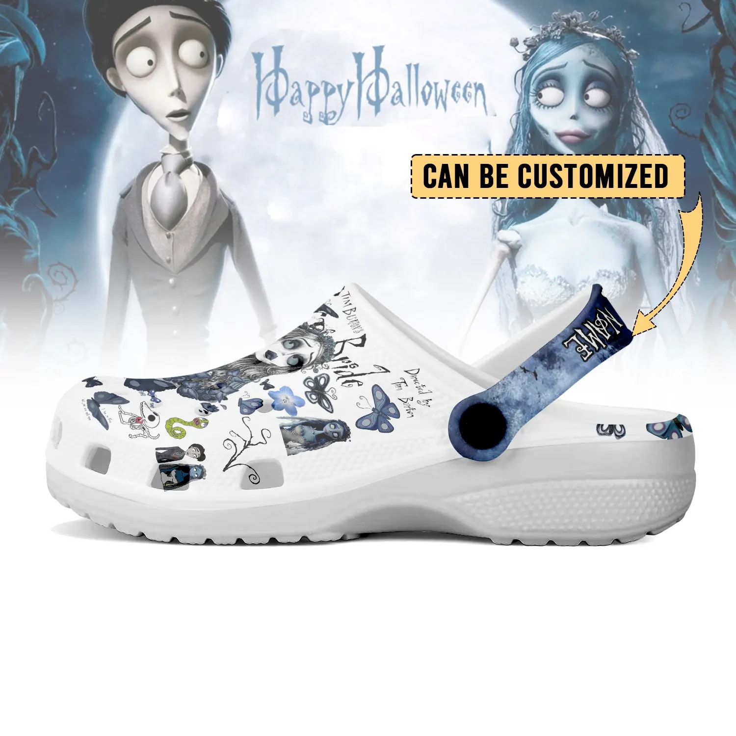 Step into spooky season with these hauntingly beautiful 3D printed Crocs! Featuring iconic imagery from a beloved Tim Burton classic, these shoes are the perfect way to add a touch of gothic romance to your Halloween look. Comfort meets frightful fun. Get yours before they vanish!