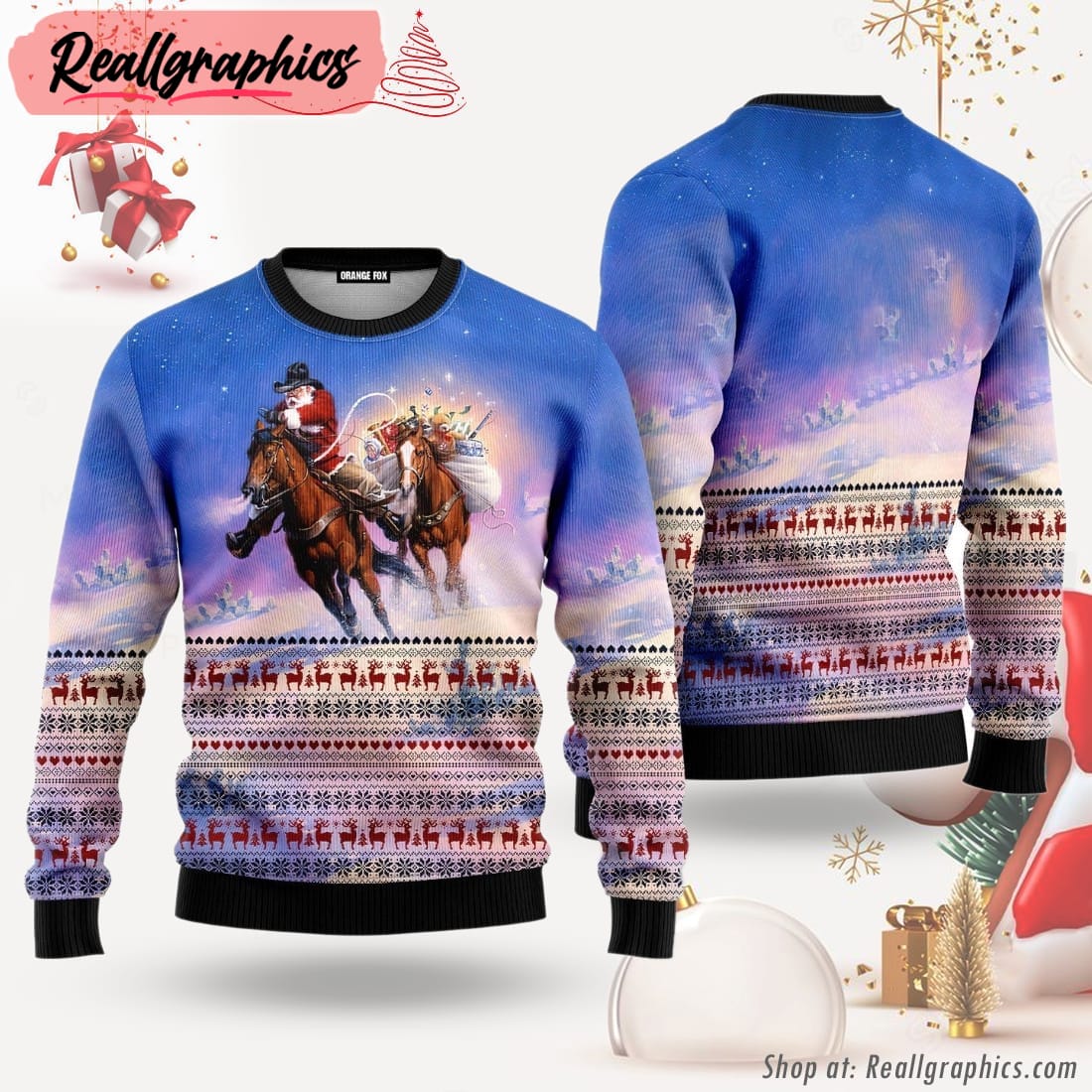 Get ready to embrace your inner cowboy and spread some holiday cheer with this unique and festive ugly Christmas sweater. The design features a jolly Santa Claus decked out in a cowboy hat, complete with a lasso and a bag of presents. The intricate detailing and vibrant colors make this sweater truly stand out. Whether you’re wearing it to an ugly sweater party or just for fun, this cowboy Santa Claus ugly Christmas sweater is the perfect way to showcase your holiday spirit in a fun and playful way. It’s the perfect combination of western flair and Christmas cheer, sure to bring smiles to everyone’s faces.