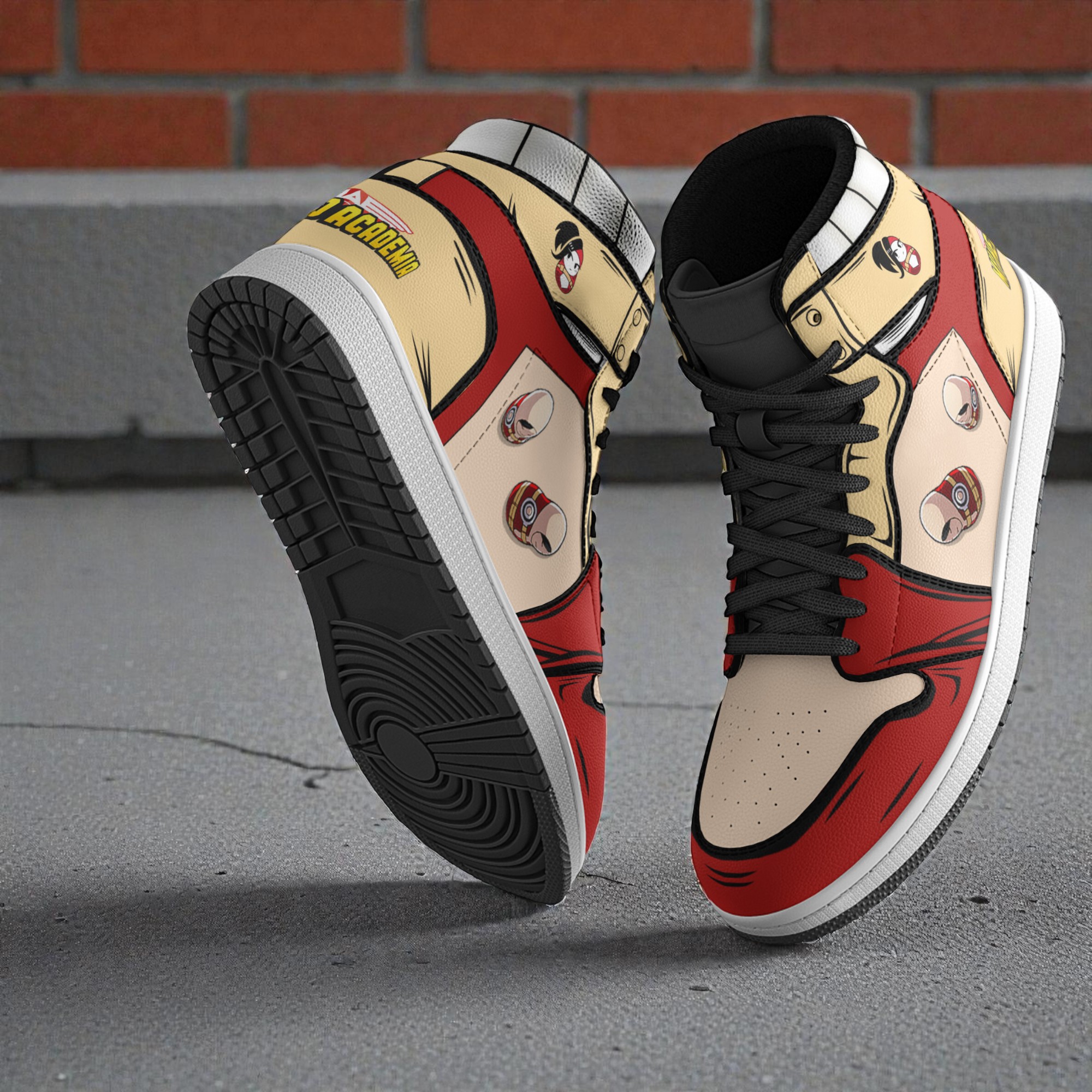 The colorway is a clean, striking mix of tan, bold red, and black, directly matching her hero costume. For the details, we scattered graphics of the Matryoshka nesting dolls—the ones she famously creates during her fights—across the side panels, right next to the classic My Hero Academia logo. It’s a very clever, specific detail that other fans of Class 1-A will instantly recognize, but it still looks like a regular, stylish sneaker to everyone else.