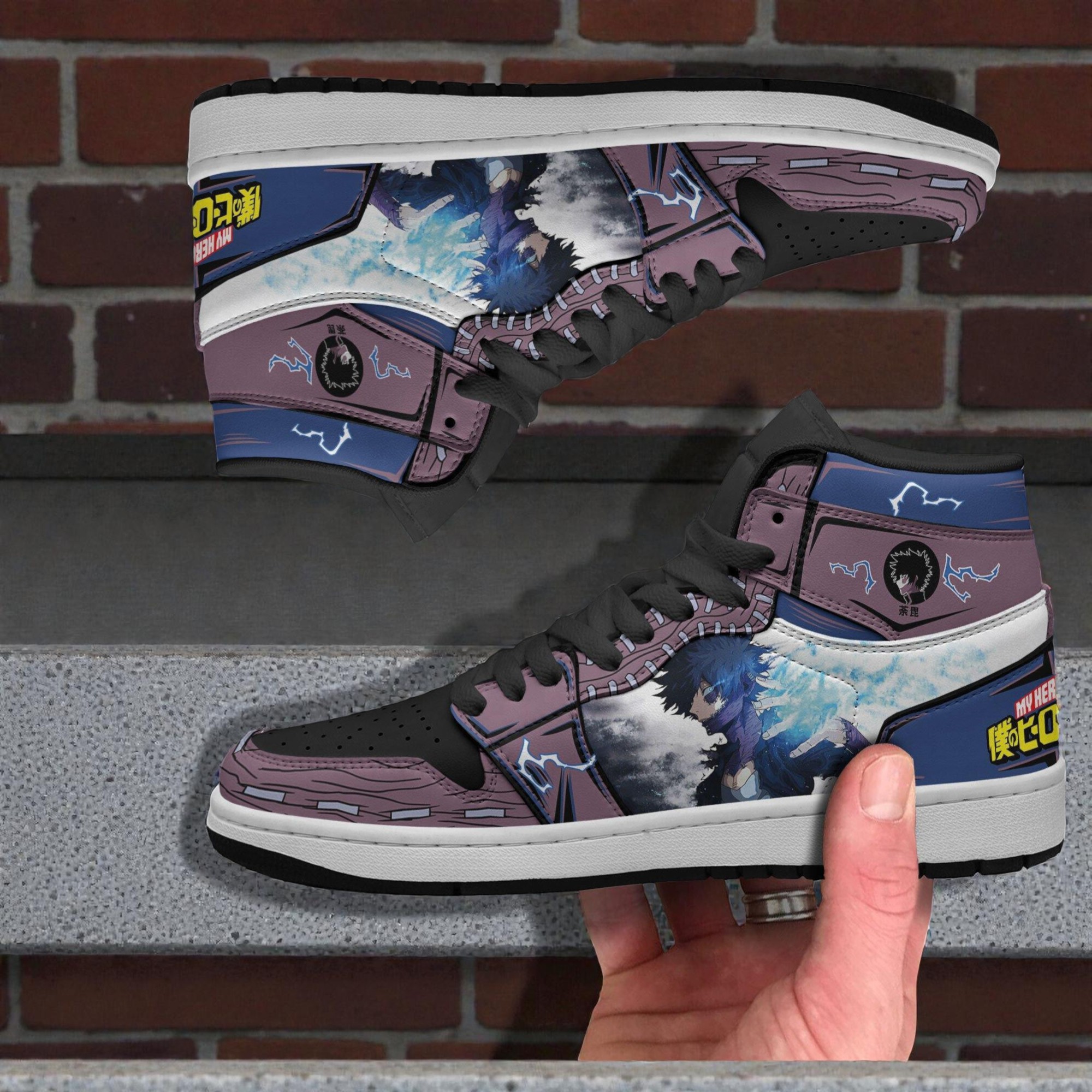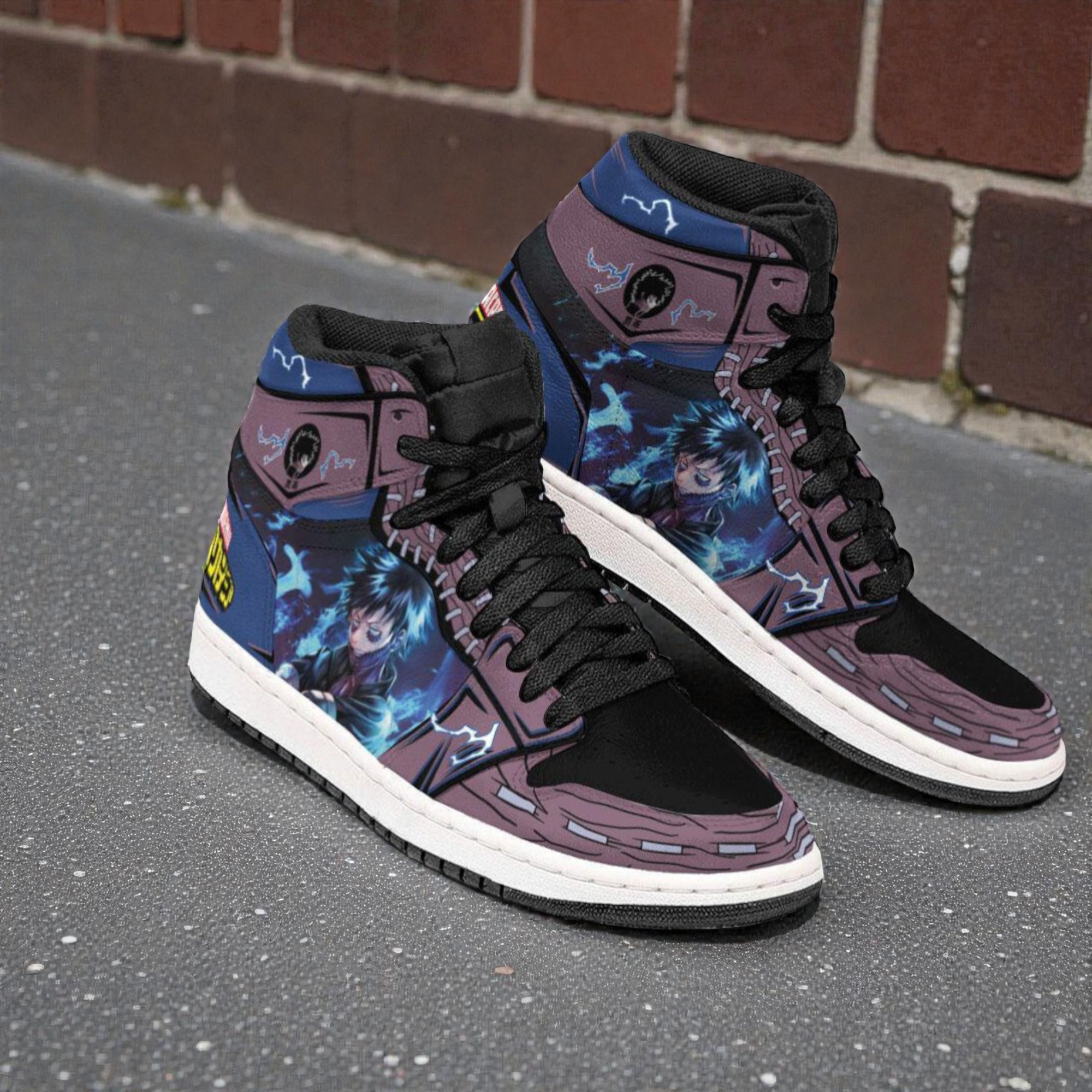 The most distinct feature here is the purple, stitched skin pattern on the toe box and overlays—it mimics Dabi’s patchwork scars and staples exactly. On the side panels, you have Dabi himself surrounded by his signature blue flames, contrasting against the black background. The My Hero Academia logo is also placed near the heel to finish the look.