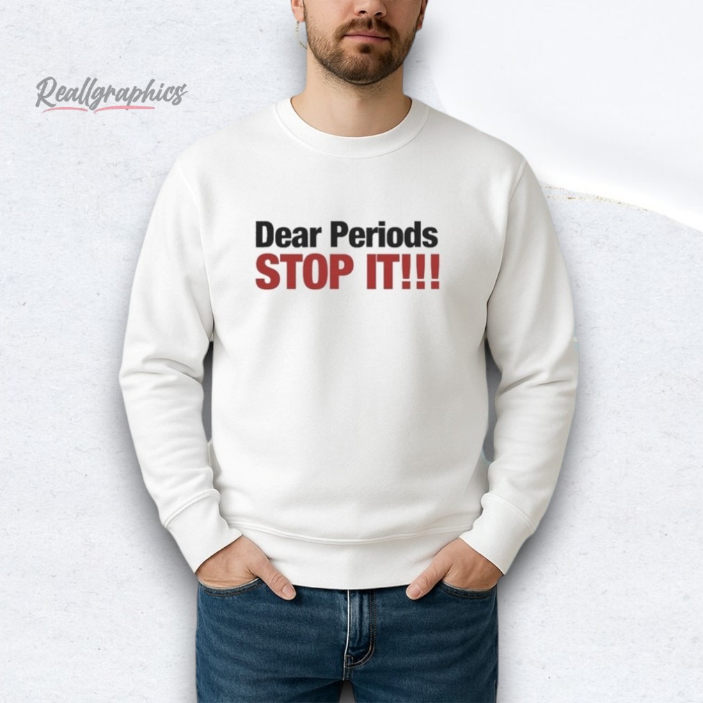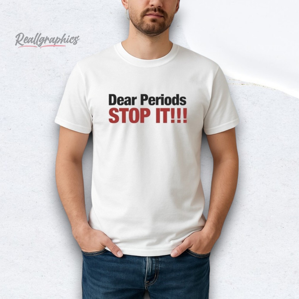 Tired of period woes? This comfy tee speaks your mind. Soft fabric and a relatable message make it perfect for those days when you just want to say, "Enough!" Get yours and let your shirt do the talking. Dear Periods Stop It Shirt