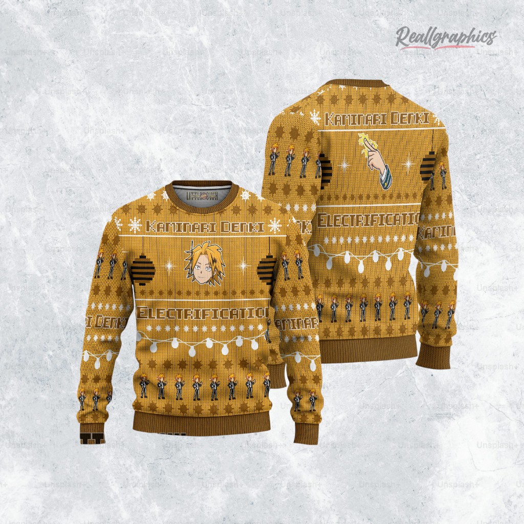 Who wouldn’t smile seeing Denki Kaminari light up your holiday season with his electrifying charm? This fun design brings My Hero Academia fans together with its playful nod to Kaminari's zappy personality. Perfect for cozy gatherings or showing off your anime love in a festive way. It's a delightful conversation starter that sparks joy. Ready to embrace your inner hero? Grab yours now and light up the celebrations!