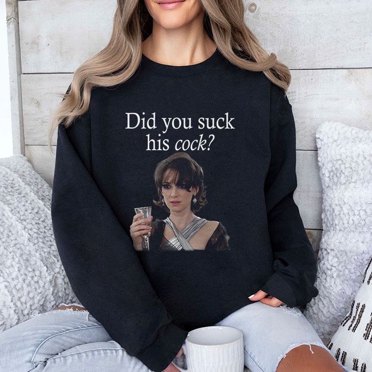 A low-lit room buzzes with the irreverent energy of late-night banter and sharp wit, exactly the kind of atmosphere where this shirt finds its voice. The black fabric serves as a stark backdrop for the bold statement overlaying it: “Did you suck his cock?” rendered in a mix of serif fonts that balance cheekiness with a hint of old-school gravitas. A woman, casually clutching a glass, anchors the design—her poised yet knowing stance adds a layer of sly confidence to the provocative text, turning it into less of a question and more of a taunt. Those who gravitate toward this design are not just looking for humor—they’re embracing a shared understanding of edgy satire, the kind that thrives in after-hours gatherings or as a sharp conversational spark at parties. It’s the kind of shirt that signals a certain fearless personality, someone who thrives on playful controversy and enjoys turning heads with unapologetic frankness. The precise typography choices give it a crafted, deliberate feel rather than something hastily slapped together, underscoring the wit behind the wardrobe boldness. This is a nod to the risqué humor loved by those who wear their irreverence like a badge, making it a fitting piece for anyone who enjoys mixing their nightlife with a little mischief. It also carries the playful spirit of a gag gift—something that lands perfectly for friends who appreciate humor that walks that fine line between shocking and smart. In spaces where conversation runs late and laughter gets a little louder, the Did you suck his cock shirt fits right in, unapologetically loud and unmistakably clear.Did You Suck His Cock Beth Macintyre Shirt