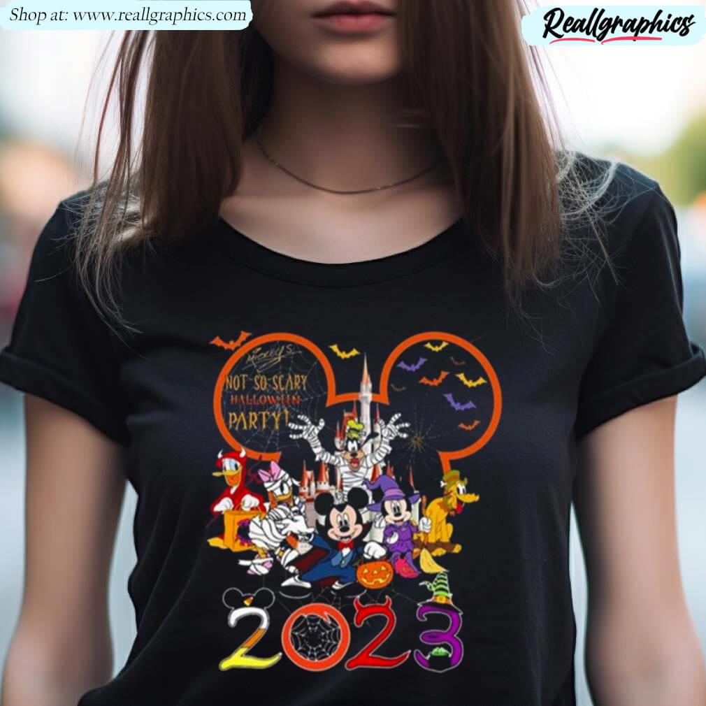 Get ready to celebrate Halloween with your favorite Disney characters at the 2023 Halloween Party! This exclusive event is packed with spooky fun and frightful surprises. The Mouse Not So Scary Shirt is the perfect souvenir to commemorate your unforgettable night. Featuring beloved Disney characters in their Halloween costumes, this shirt captures the magical spirit of the event. Whether you're young or young at heart, you'll love showing off your Disney fandom with this festive and spooky shirt. Don't miss out on the chance to be a part of this enchanting celebration and grab your Mouse Not So Scary Shirt today!
