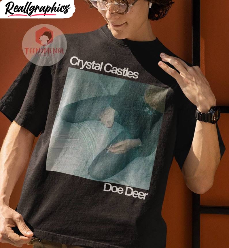 Transport yourself to the mesmerizing world of Crystal Castles with our latest collection of apparel inspired by their iconic song, Doe Deer. Immerse yourself in the ethereal sounds of the music while expressing your love for the band with our cozy crewneck, stylish t-shirt, trendy hoodie, and comfy sweatshirt. Channel your inner music lover and stand out from the crowd with these one-of-a-kind pieces that pay homage to the legendary duo.