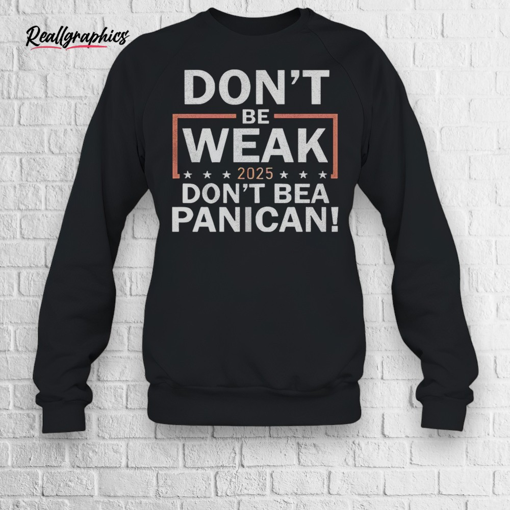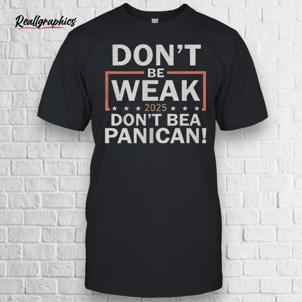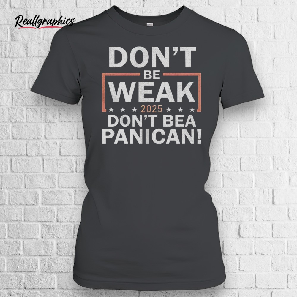 Feeling the pressure? Need a boost of confidence? Our new shirt is a reminder to stay strong and face your challenges head-on. Get yours today and wear your resilience! Dont Be Weak Dont Be A Panican Shirt
