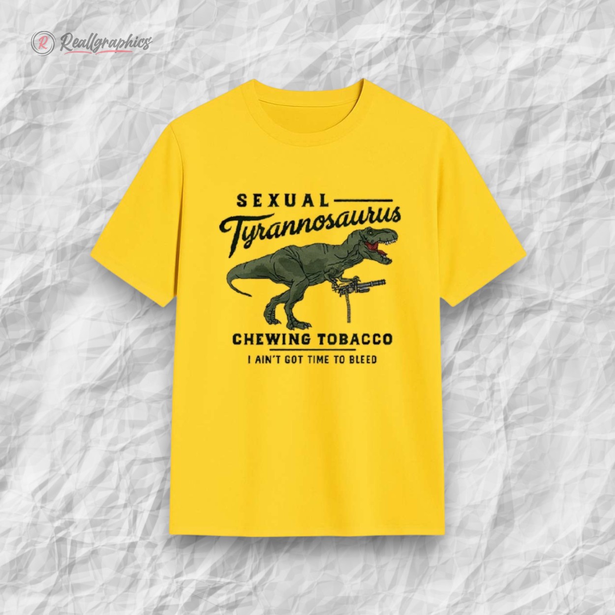 Rep the same energy as NBA standout Drew Timme with the "Sexual Tyrannosaurus" hoodie that broke the internet. This vibrant yellow pullover is more than just a sweatshirt; it's a bold tribute to the rugged confidence and over-the-top swagger of 80s action cinema. Whether you're heading to the arena or hitting the court, this hoodie tells the world you’re unapologetically bold—just like the "king of the dinosaurs" himself.