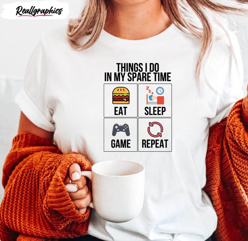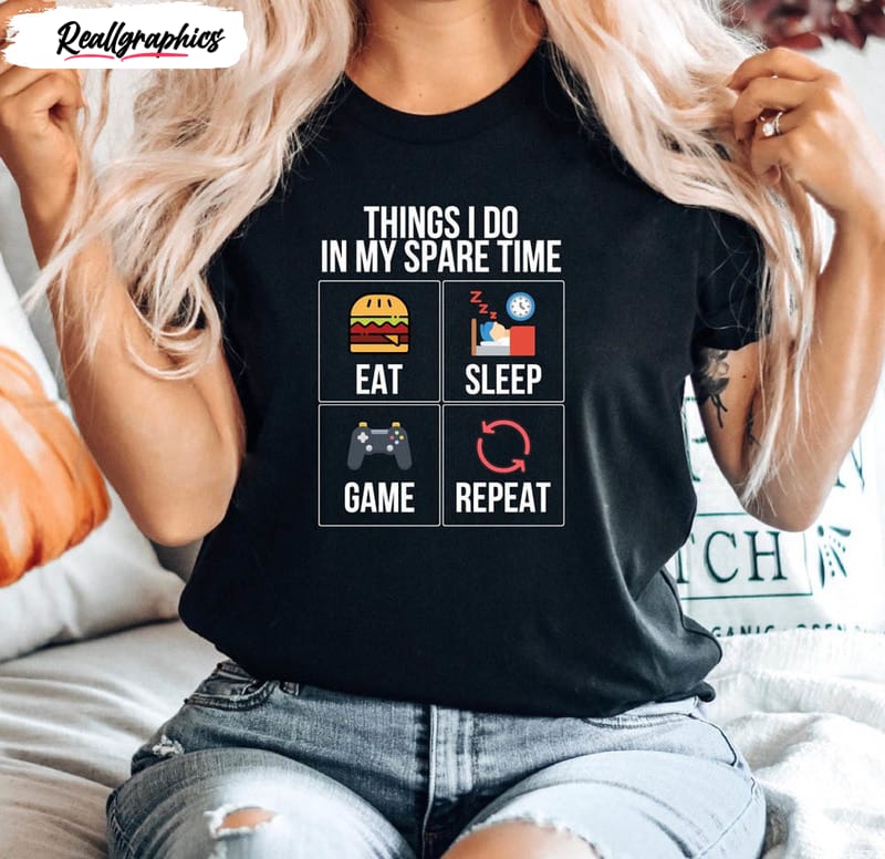 About Eat Sleep Game Repeat Things I Do In My Spare Time Shirt