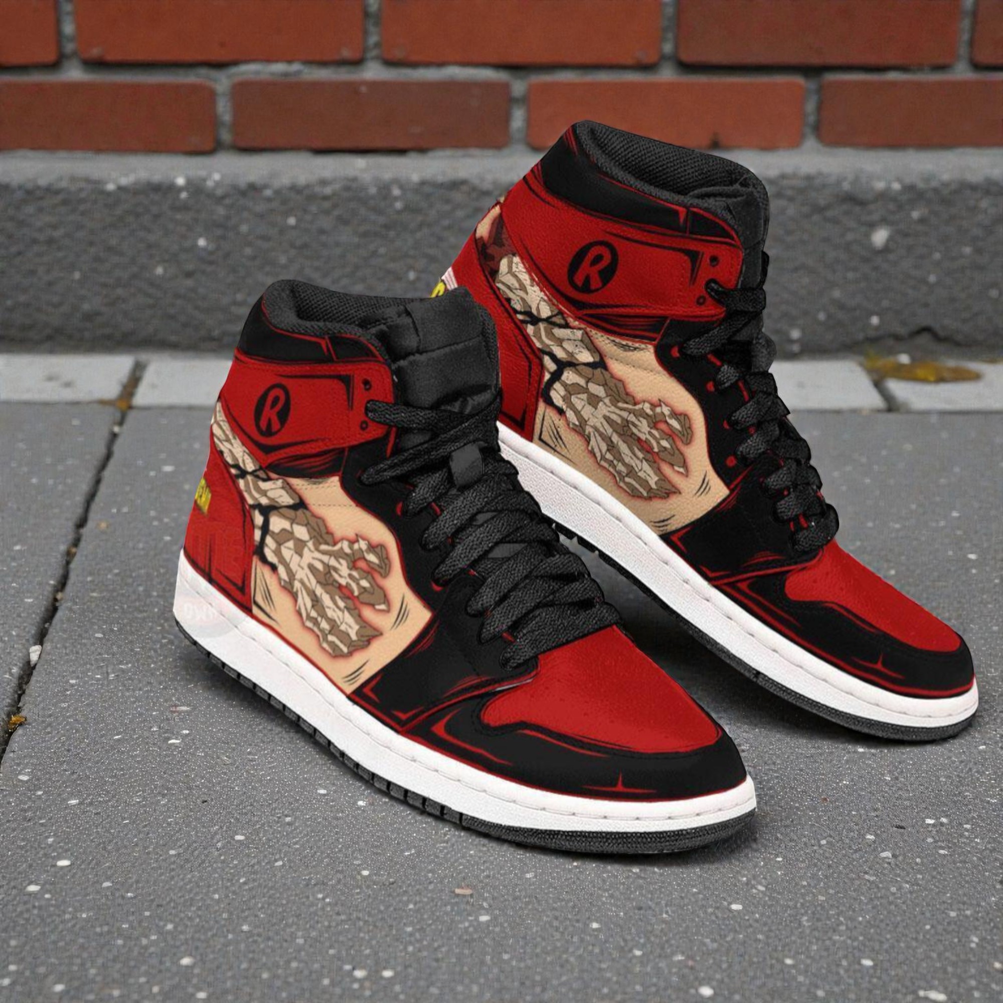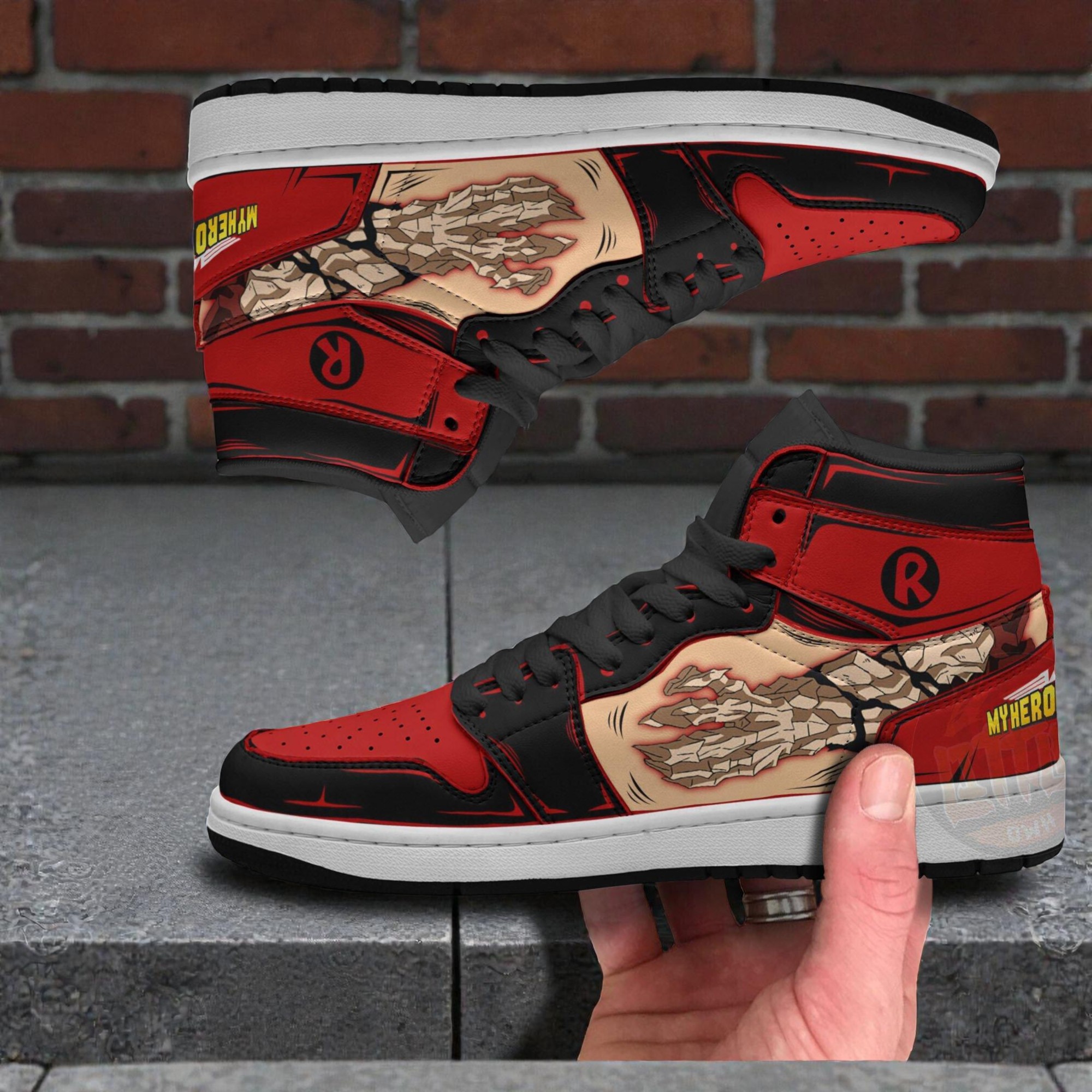 Fans of My Hero Academia know how much a character’s spirit can be captured through more than just words or scenes—it’s about presence, attitude, and style. These Eijiro Kirishima anime sneakers My Hero Academia custom Jordan boots channel that raw energy with vivid precision. The red, black, beige, and white color palette echoes Kirishima’s bold personality, while graphic designs like claw-inspired fists and cracked earth patterns scream strength and resilience, just like Kirishima’s infamous Hardening quirk. It’s not simply a shoe; it’s a visual shout-out to anyone who embodies that unbreakable will. Every detail feels intentional. The bold typography draws from comic-book and street art styles, turning the footwear into a statement piece that extends beyond casual wear. For fans who love to express their passion through cosplay or everyday outfits, these sneakers aren’t just gear—they become a part of identity. Sneaker enthusiasts with a penchant for anime culture will appreciate how this design bridges both worlds seamlessly. These custom Jordan sneaker boots suit fan events and conventions perfectly, offering a way to display fandom without saying a word. They also make a thoughtful gift for friends who thrive on bold graphics and strong character vibes, tapping into that shared excitement that makes fan culture so electrifying. It’s for anyone who wants something that feels like it was crafted from the essence of My Hero Academia’s spirit—dynamic, personal, and hard to ignore.