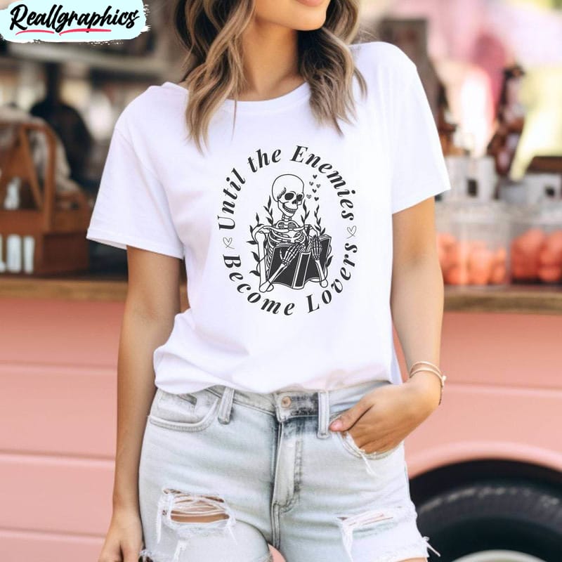 Enemies To Lovers Skeleton Shirt, Book Trope Long Sleeve Unisex T Shirt details