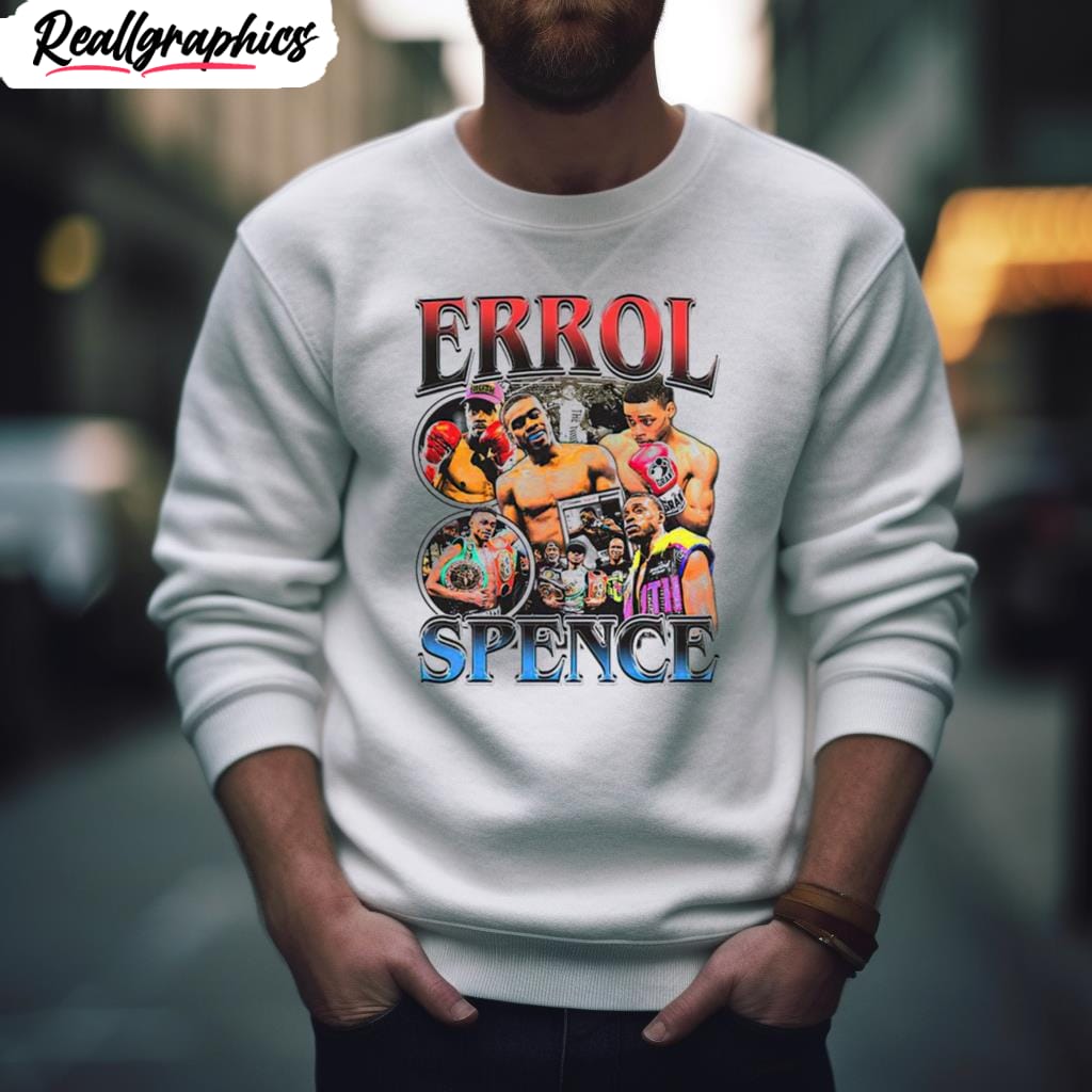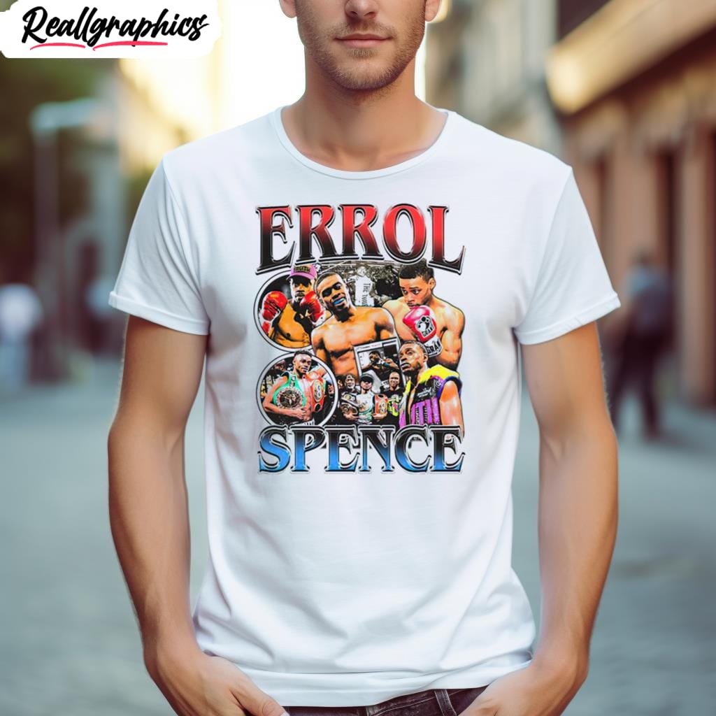 This Errol Spence Boxing Shirt is a great choice for fans of the sports and of Errol Spence himself. It features a modern fit designed to move with you, making it a great choice for wearing in the boxing ring or for daytime casualwear. The lightweight cotton fabric keeps you cool and comfortable, while the bold graphics featuring Errol Spence will make sure that you stand out from the crowd. It's the perfect way to show your support for one of the greatest boxers of all time.