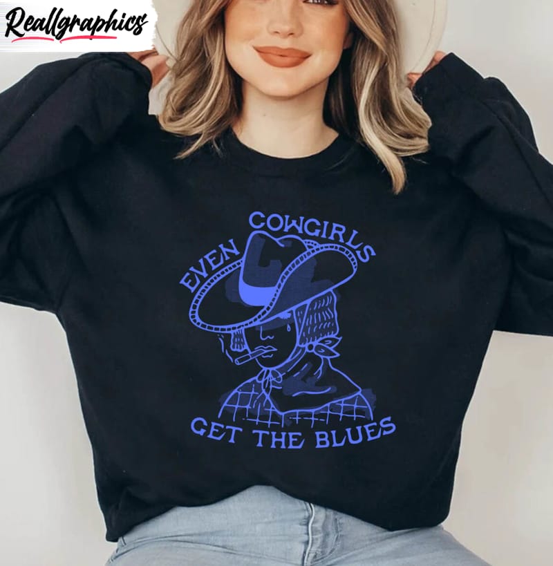 Even Cowgirls Get The Blues Trendy Shirt, Western Cowgirl Tee Tops Unisex Hoodie details
