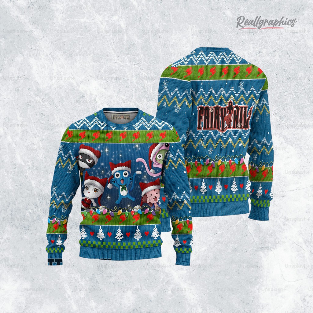 Fairy Tail Ugly Christmas Sweater Happy and Friend Custom Anime Sweatshirt