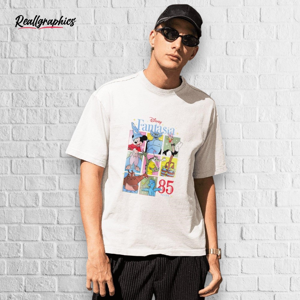Celebrate 85 years of magical animation with this stunning commemorative shirt! Featuring iconic imagery from the classic film, it's the perfect way to show your love for Mickey as the Sorcerer's Apprentice and all the enchanting moments. Get yours now before they disappear like a magical spell! Fantasia 85th Anniversary Shirt