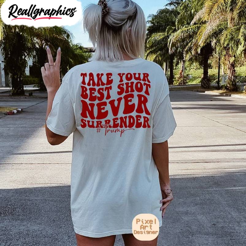 Celebrate your unyielding patriotism with our latest apparel that perfectly blends comfort and style. Emblazoned with a bold, inspiring message that resonates with the spirit of resilience, this collection offers a versatile choice for any occasion. Whether you're heading out for a casual day or attending a spirited event, make a statement that echoes your unwavering devotion. Feel the pride, wear the conviction, and never back down!