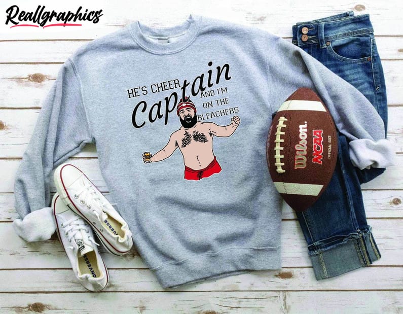 The Fantastic Hes Cheer Captain Football Era Sweatshirt Modern Jason Kelce Shirt Hoodie is a stylish and trendy piece of clothing that is perfect for sports enthusiasts. Made with high-quality materials, this shirt hoodie is not only comfortable but also designed to withstand rigorous physical activities. It features a modern and sleek design that will surely make you stand out on the field or at the stadium. Whether you’re a cheer captain or a football player, this shirt hoodie is a must-have for any sports fan.