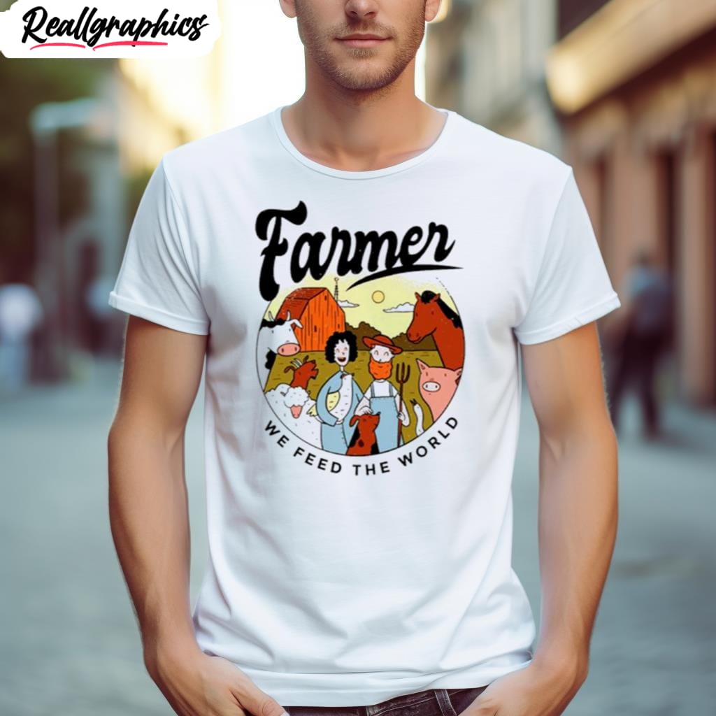 The Farmer We Feed The World Vintage Shirt is a timeless clothing item that celebrates the hardworking farmers around the world. This shirt is made from a lightweight and comfortable 100% cotton material that makes it perfect for everyday wear and stylish enough for special occasions. The classic vintage design features an illustration of a farmer with a bright green tractor in the background. The design also includes text that reads “Farmer We Feed The World”, showing appreciation for those who provide food for the world. The shirt is a stylish way to show your support for the farmers that keep us fed!