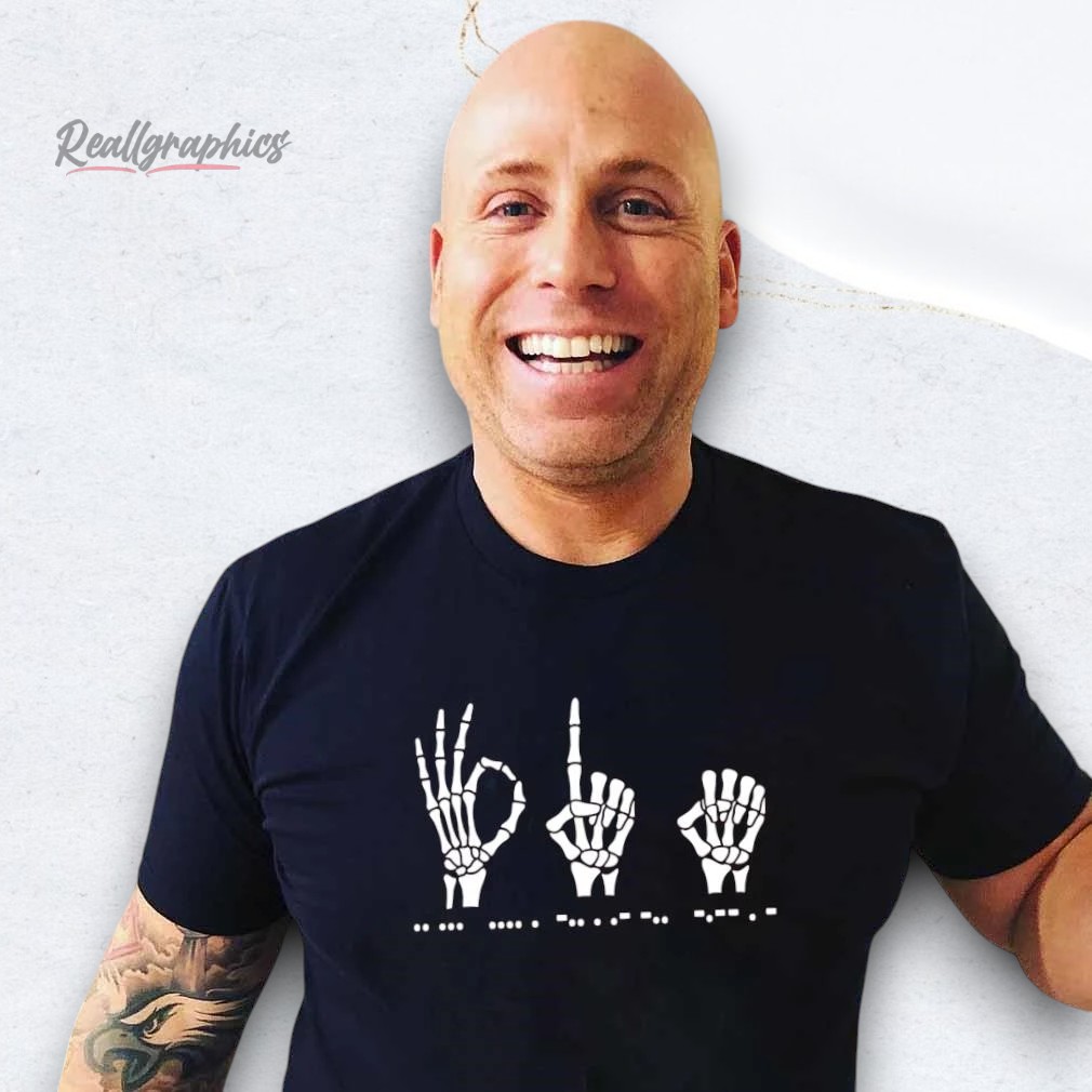 Unveil a unique blend of style and communication with our latest shirt that brings sign language to life through an edgy and artistic design. Perfect for those who appreciate the intersection of fashion and meaningful expression, this shirt features an intricate skeleton hand motif that is sure to capture attention and spark conversations. Whether you're fluent in sign language or simply love innovative design, this piece invites you to wear your language and individuality proudly on your sleeve. Join a movement of style and statement, and let your outfit do the talking in the most compelling way.