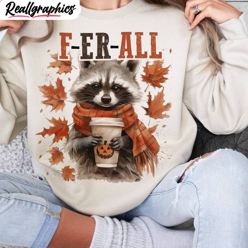 Feral Girl Autumn Shirt, Funny Racoon Long Sleeve Tee Tops details